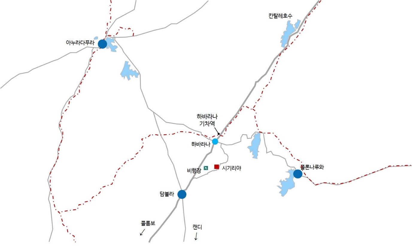 위치: 아누라다푸라-폴론나루와-담불라로 연결되는 문화삼각지 내에 위치하며 접근로는 양호한 편이다.