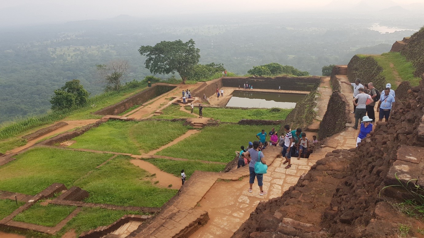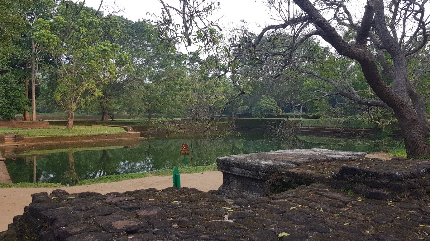 박물관에서 시기리야를 향해 조금 걷다 보면 이 고대도시를 둘러싸고 있는 해자를 만난다. 적의 공격을 막기 위해 방어에 치중한 요새의 일면을 실감하며 고대도시로 들어서면 넓게 펼쳐진 정원을 만난다. 거대한 바위로 향하는 가운데 길을 중심으로 오른쪽에는 어느 정도 발굴과 복원이 이루어져 있고 이와 대칭으로 조성된 왼쪽은 미래를 위해 발굴을 미루어 둔 모습이었다. 5세기에 지어졌음에도 붉은 벽돌, 잔디, 연못 등으로 조성된 물의 정원(Water Gardens)은 상당히 고풍스런 모습이었을 것임을 짐작할 수 있었다. 지금 평가해도 뛰어난 수로시설까지 갖추고 있었다고 하니 최고의 고대 계획도시로 평가받는 이유를 알 수 있을 것 같았다.